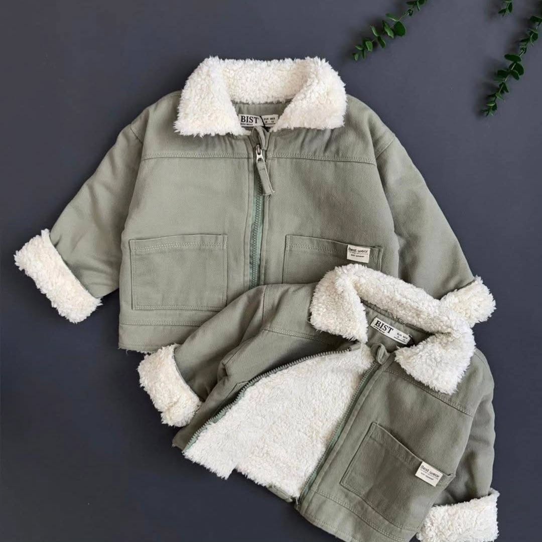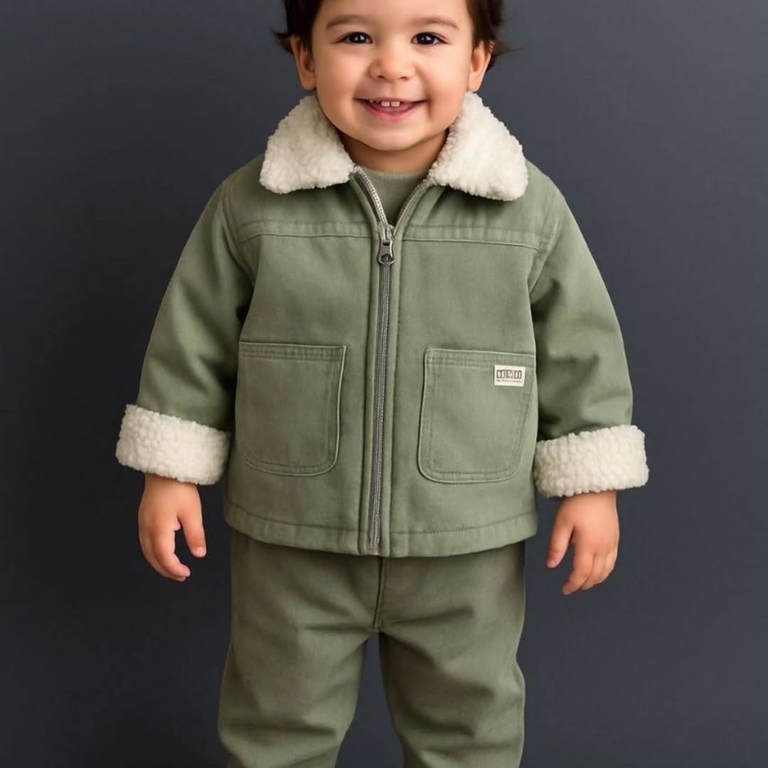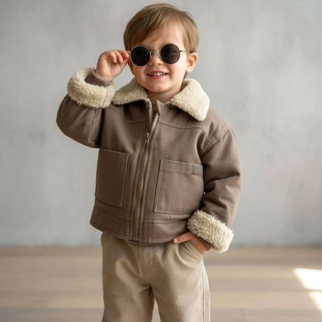 کاپشن با رویه کتان گِرَم، مناسب از ۱ تا ۷ سال با طراحی خاص.